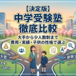 - 【2026年最新】中学受験塾の選び方!大手4塾と新興塾(少人数)の費用・進学実績を徹底比較「そろそろ中学受験に向けて塾を探さないと…」と考え始めたものの、どの塾が我が子に合っているのか迷っていませんか … 続きを読む 【2026年最新】中学受験塾の選び方!大手4塾と新興塾(少人数)の費用・進学実績を徹底比較